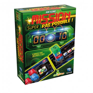 Le compte à rebours est lancé ! 9:41.. 9:40.. 09:39… De la tension tout du long De la coopération, de la diplomatie, en urgence ! Vous avez aimé Mission Pas Possible ? Vous adorerez Mission Super Pas Possible ! 10min de partie et c’est tout ! Des nouveautés: pouvoirs individuels par joueurs, obstacles, nouveaux sabotages et étincelles, dés bicolores